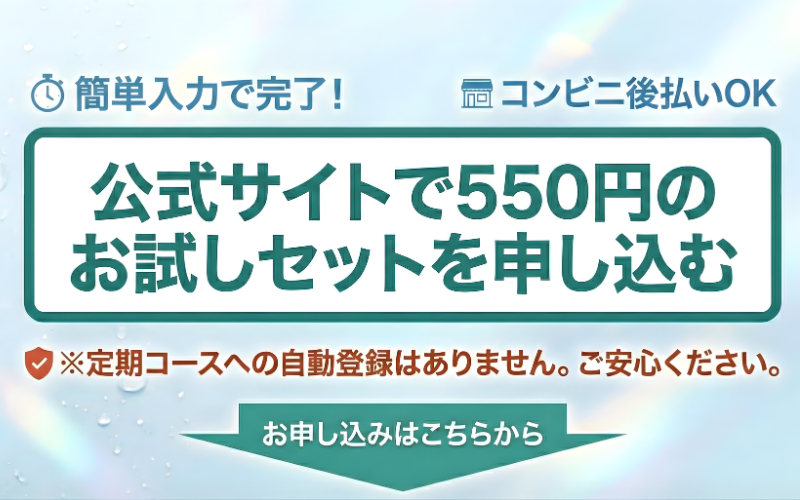 カフェでコーヒーを1杯飲むのを1回だけ我慢して、この550円セットで、あなたの肌が変わるかどうか試してみてください。