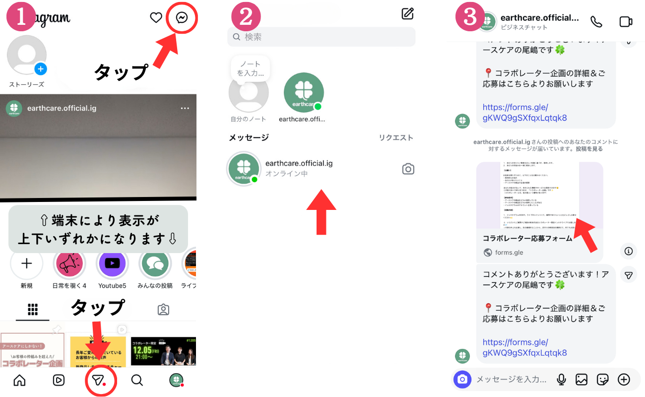 アースケア公式インスタグラム(earthcare.official.ig)からのメッセージを開き、応募フォームにご記入をお願いいたします。