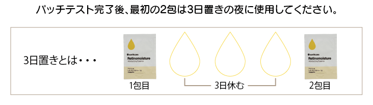 パッチテストで問題ないことを確認した後、最初の3包は3日置きに使用してください。